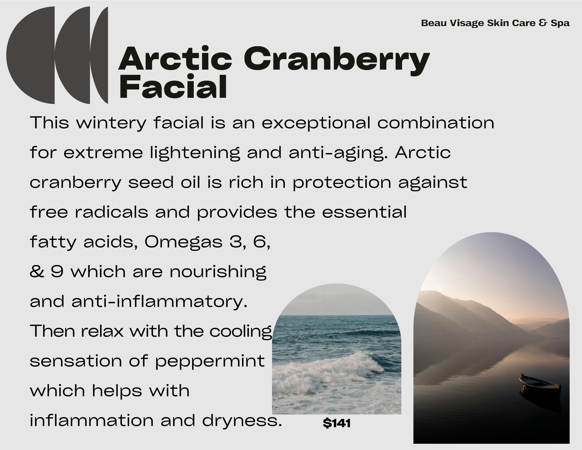This winter facial combines powerful brightening and anti-aging benefits with nourishing arctic cranberry seed oil and a cooling peppermint finish to calm inflammation and dryness.